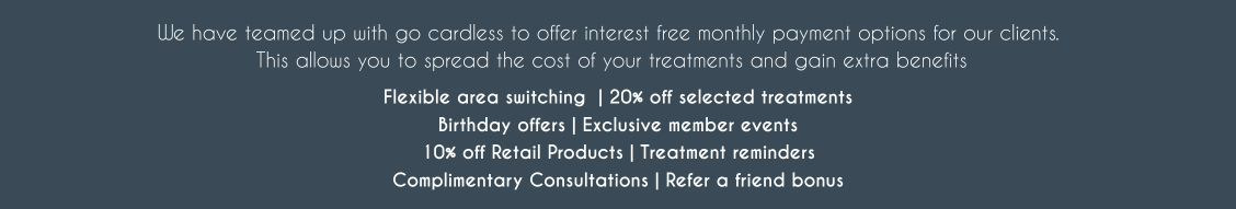 SPREAD THE COST OF YOUR TREATMENT 12 Month Subscriptions 3 Month Subscriptions Bespoke packages available including skincare. Please book a consultation for more information. Terms and Conditions Apply